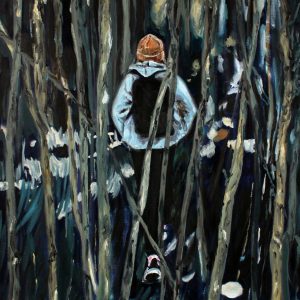 Brushwood is an almost impenetrable kind of vegetation, it’s the kind of nature that resists the human touch, and so allows other life forms a haven. As a painter the word ‘brushwood’ offers a play with words; brush-wood. The inner images are painted into woods of brush strokes, let loose in a land on the linen surface.